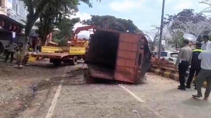 Truk Terbalik, Kelapa Sawit Terhambur Di Depan Taman I Love Palopo